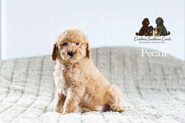 Pecan is an F1BB Mini Goldendoodle, expected to mature around 30–35 pounds — a sweet, soulful boy with a rich, velvety coat! 🐾🤎